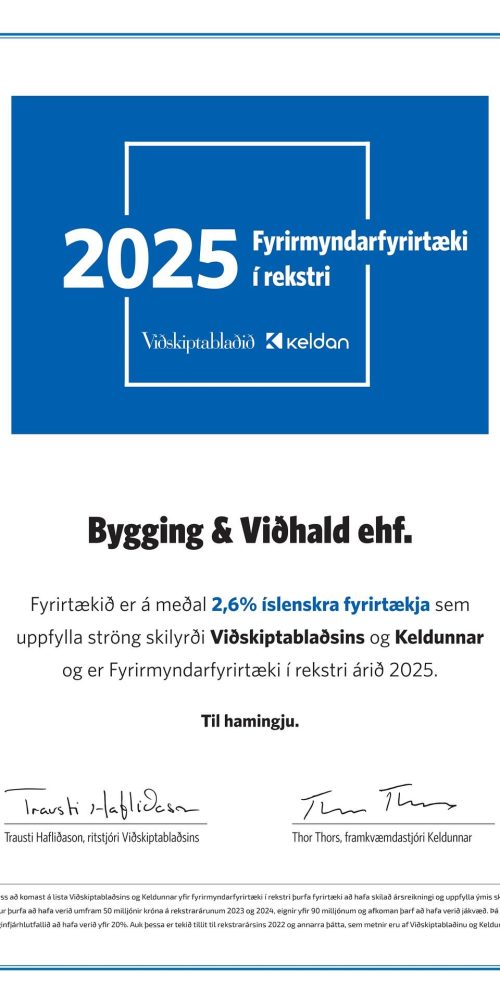 Bygging og Viðhald er lítið fjölskyldufyrirtæki sem sérhæfir sig í almennu viðhaldi og byggingarvinnu.